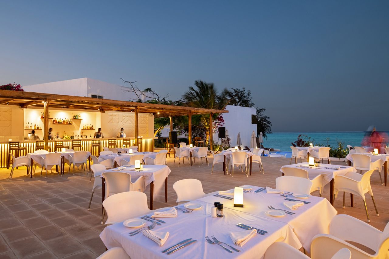 Among the standout dishes are the "Zanzibar Spice Marinated Grilled Fish," a tribute to the rich local fishing tradition, and the "East African Nyama Choma Platter," featuring a variety of grilled meats marinated with local spices. The "Tropical Fruit Pavlova" showcases the region's fresh fruits in a light and airy meringue nest for dessert. The atmosphere at Skybar Zanzibar by Nungwi Dreams is one of relaxed elegance. Its minimalist design, combined with subtle African touches, creates an ambience of sophistication without pretension. The open-air setting allows for unobstructed views of the sky and sea, giving guests the sensation of dining amidst the stars and the waves.